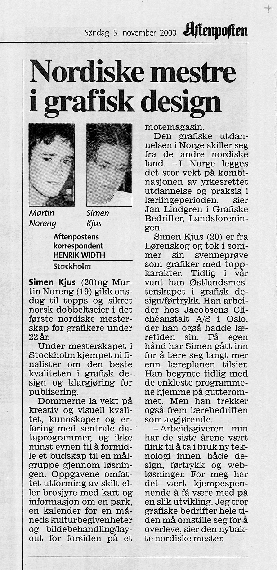 Vår historie begynner så smått tilbake i 2001. Simen og Martin er førtrykkslærlinger i hver sin Oslo-bedrift. Norsk Grafisk Forbund arrangerer fagkonkurranser for ungdom under 23 år. Begge er deltakere og blir nummer 1. og 2. i Østlandsmesterskapet. I NM tar de ny henholdsvis 1. og 2. plass. Premien var tur til Stockholm og Nordisk konkurranse. Selv om de fortsatt kniver om de gjeveste plassene, og nok en gang blir nummer 1. og 2., så utvikler de et vennskap som skal vise seg å bli langvarig.